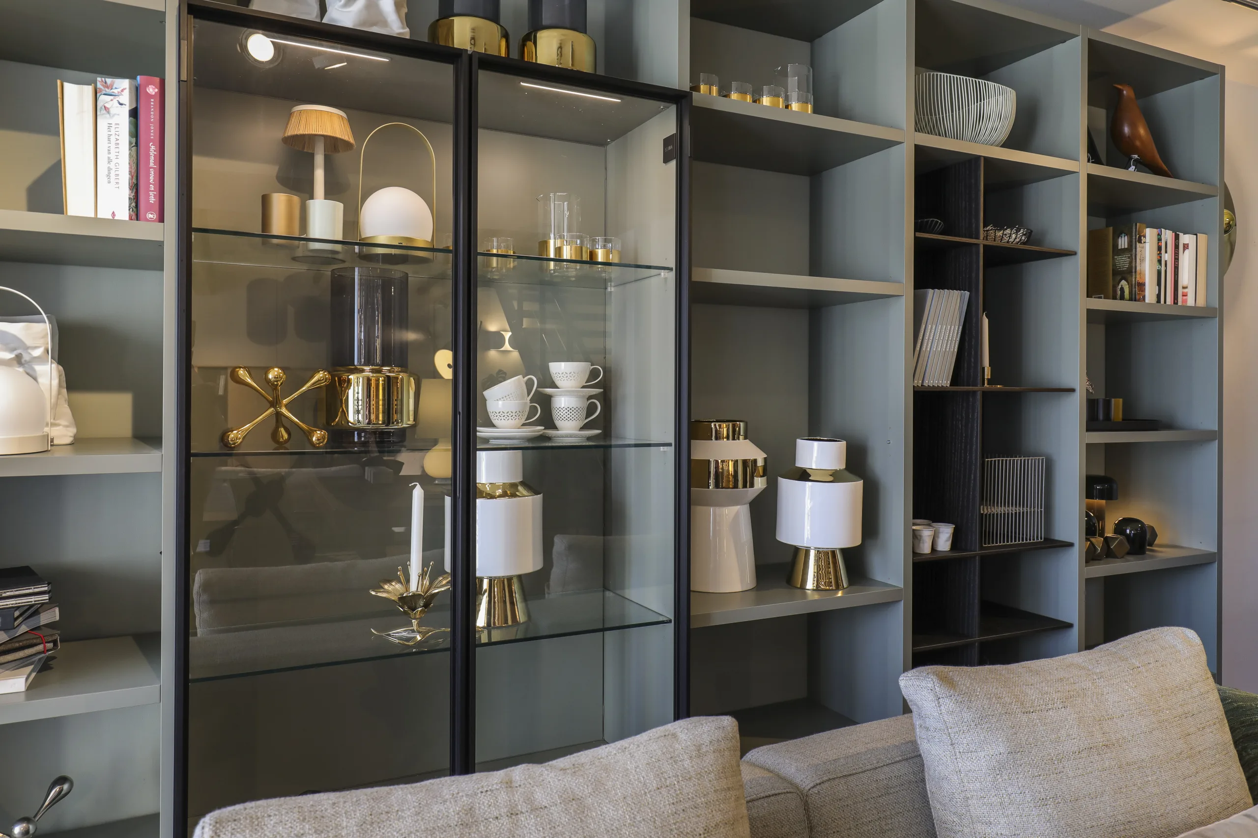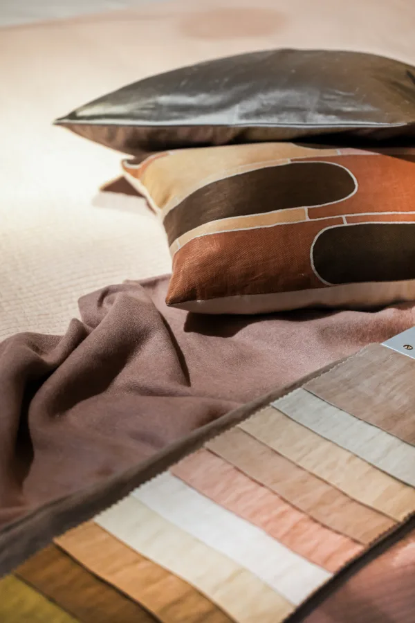 Wanneer daar behoefte aan is, kan raamdecoratie worden meegenomen in het interieurplan. Naast de functionele voordelen vormt het namelijk ook een belangrijke decoratieve aanvulling op het totaalbeeld van een interieur. In de woonstudio is een brede collectie stoffen te bekijken, variërend van lichte, transparante stoffen tot meer gesloten of verduisterende varianten. Deze stoffen worden volledig op maat gemaakt en toegepast in verschillende vormen, zoals rolgordijnen, vouwgordijnen of hangende gordijnen.